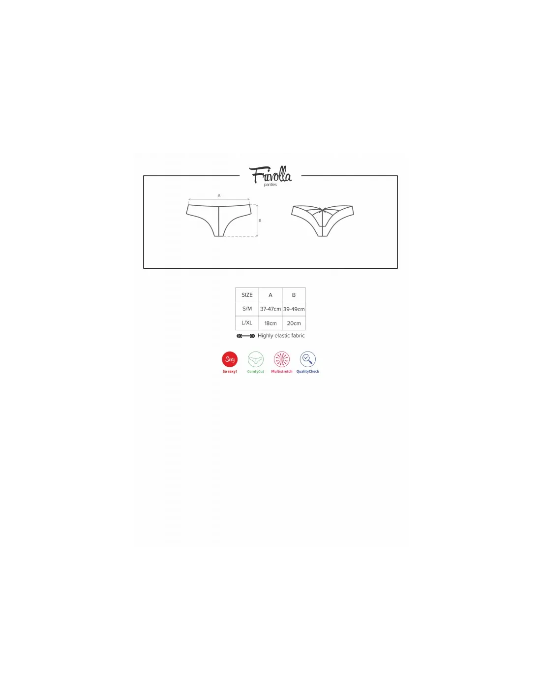 Une bien jolie et originale culotte coquine d'une sublime dentelle. Fine et sexy sur l'avant tandis que l'arrière plonge sur les fesses qui sont décorées d'ornements élastiques originaux et très confortables.
